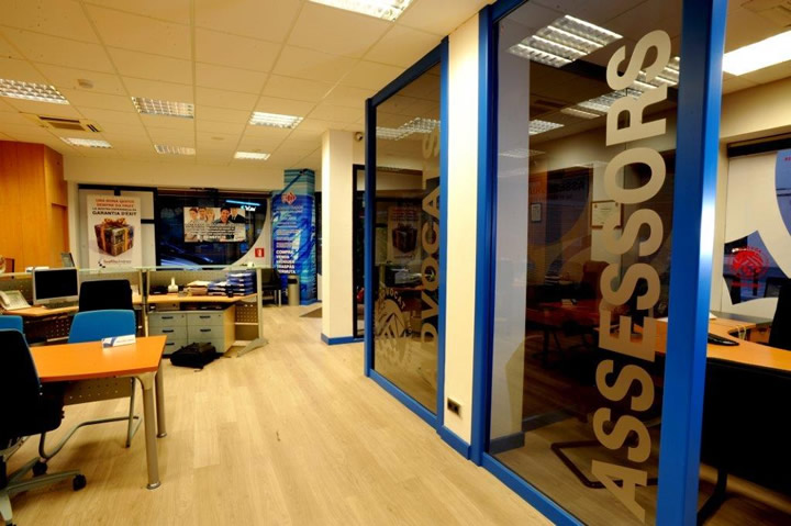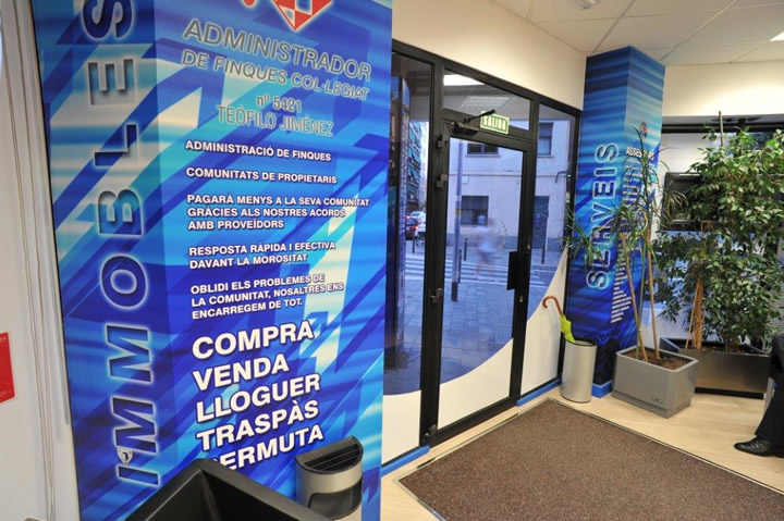 Teófilo Jiménez, está a pie de calle, totalmente accesible a sus clientes, en nuestro esquinero local con 30 metros de fachada, en la céntrica calle Francesc Macia, esq, Bonaventura Aribau eje comercial de Sant Boi de Llobregat, junto a plaza Cataluña, disponemos de más de 200 m2, de instalaciones dotadas de la más moderna tecnología, nuestra sala de juntas tiene capacidad para más de 25 personas, disponemos de 3 despachos de dirección, y 14 mesas individuales de trabajo para atención al cliente.